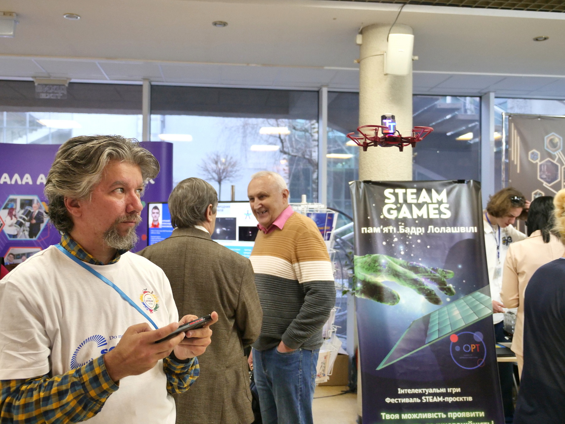 Крім того, Сергій Ченаш, викладач технологій, представив зібраний разом з учнями дрон, а також надав можливість ознайомитися з симулятором польоту. На форумі були показані дитячі поробки, виготовлені на лазерному різаку, дрон Tello та навчальний консультант на основі ШІ.